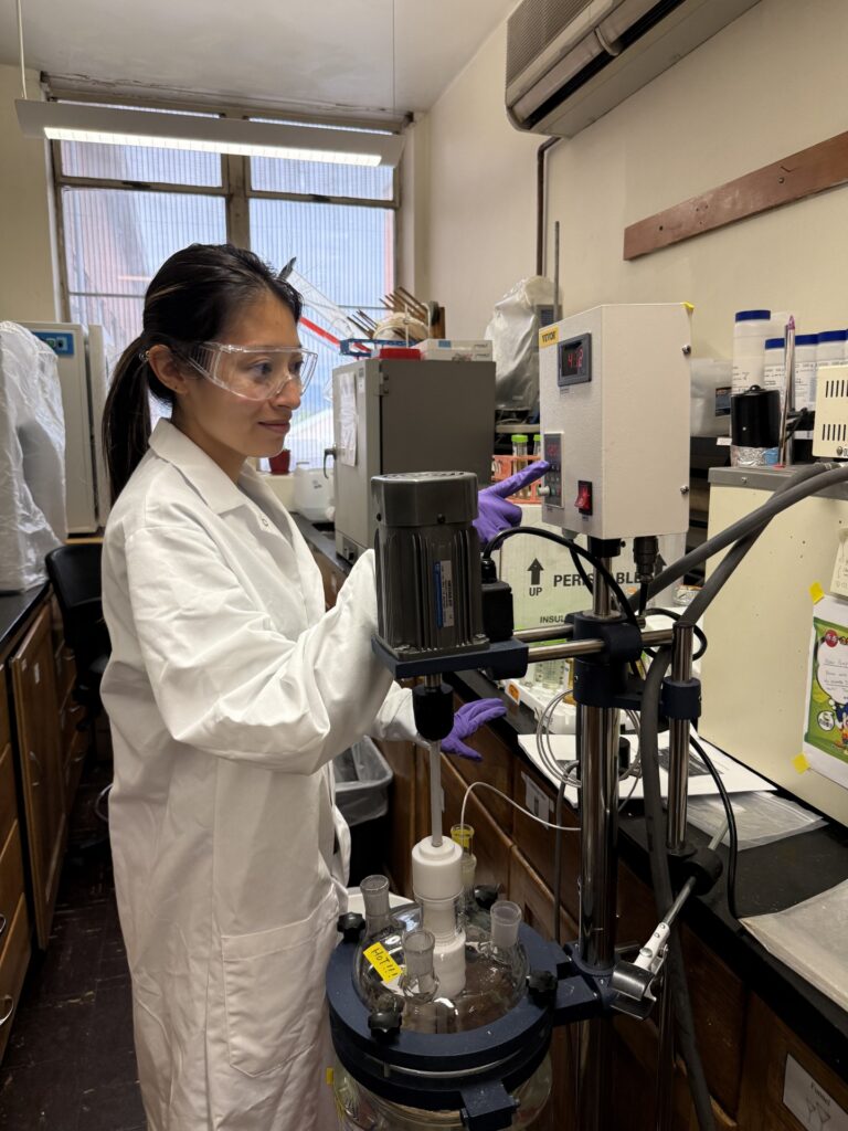 Graduate Research Assistant, Cecilia Hernandez-Hosaka, extracts fibers and other functional compounds from spent coffee grounds for their value-added applications.